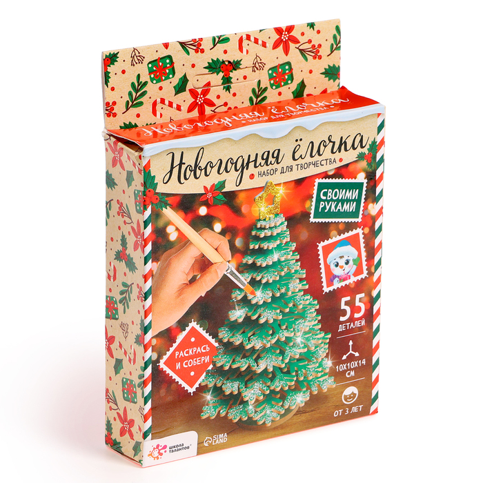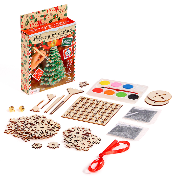 С набором для творчества «Новогодняя ёлочка» у ребёнка получится тематическая поделка, которую можно отнести в садик или подарить друзьям или родственникам.