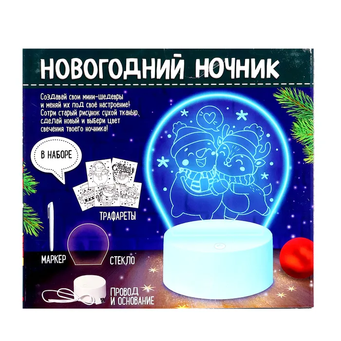 Набор для творчества «Новогодний ночник», 5 трафаретов, с маркером — Характеристики
