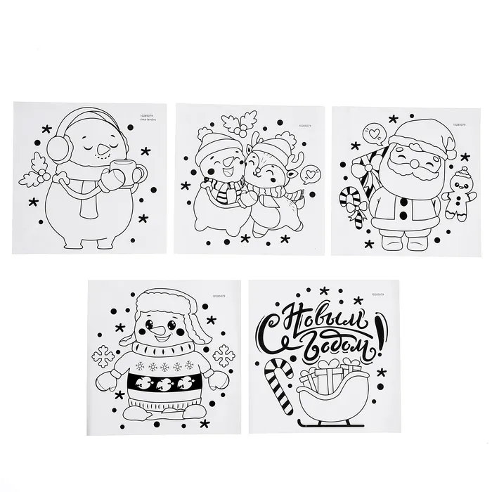 - В комплект входят 5 трафаретов с изображениями новогодней тематики.