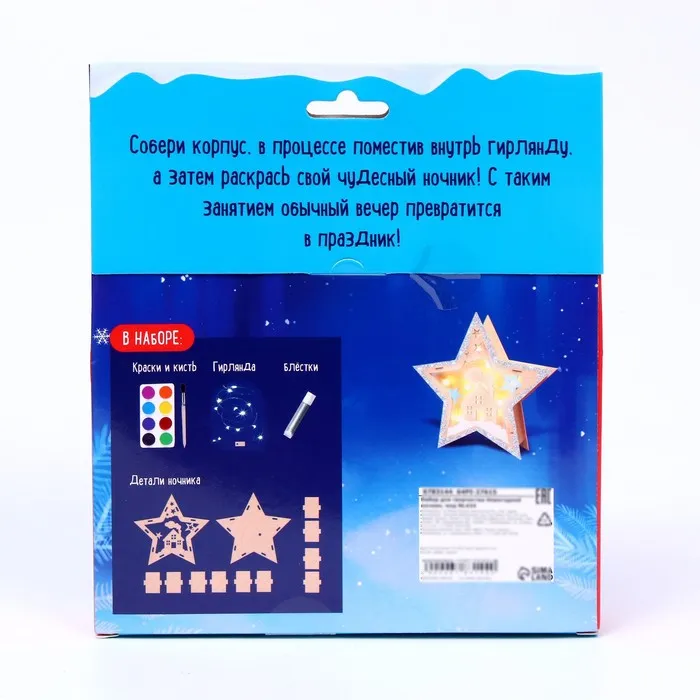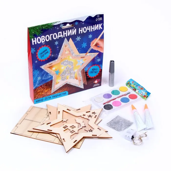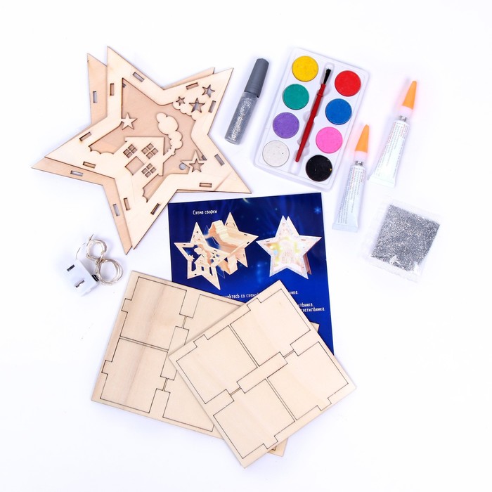 Набор для творчества «Новогодний ночник из дерева. Звезда», светящийся — Характеристики