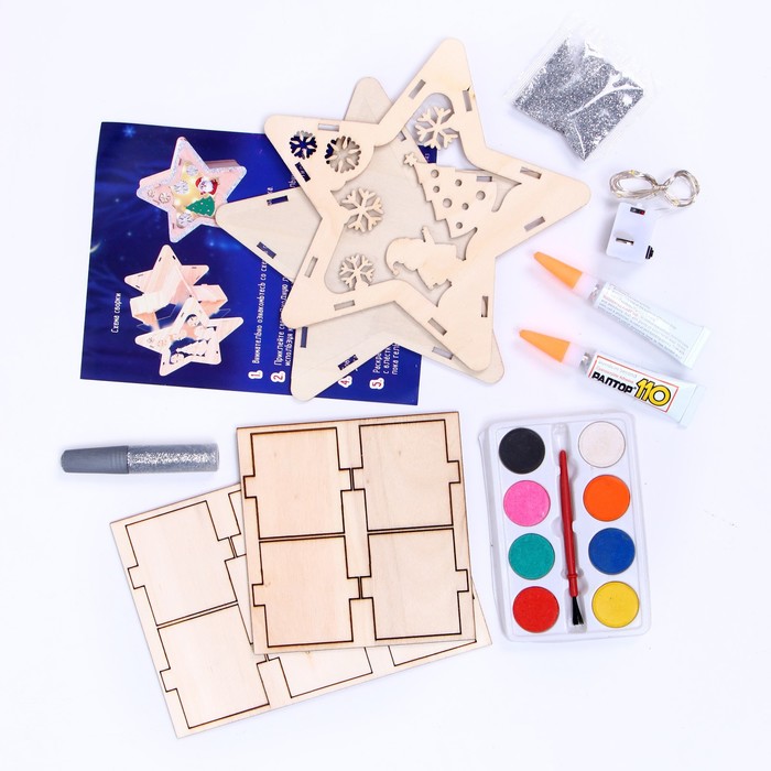 Набор для творчества «Новогодний ночник из дерева. Звёздочка», светящийся — Характеристики