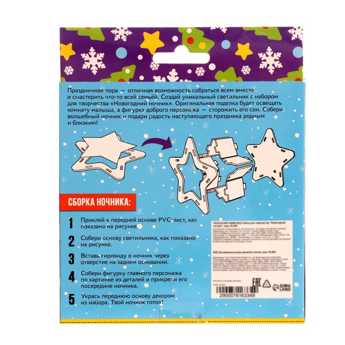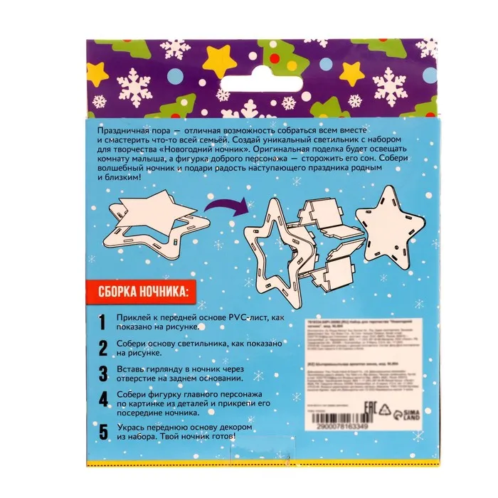 Набор для творчества «Новогодний ночник из фетра», Снеговик — Характеристики
