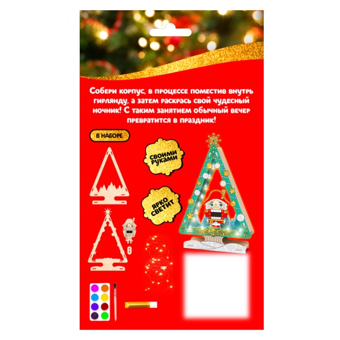 С таким набором для творчества ребёнок своими руками сделает уникальный ночник, который будет его радовать перед сном. Сборка ночника с картинкой внутри поможет развить творческие способности ребёнка. А ещё подарит радость и новогоднее настроение всей семье. Создайте волшебную атмосферу праздника!