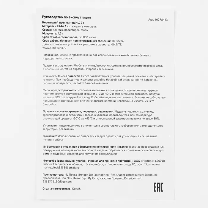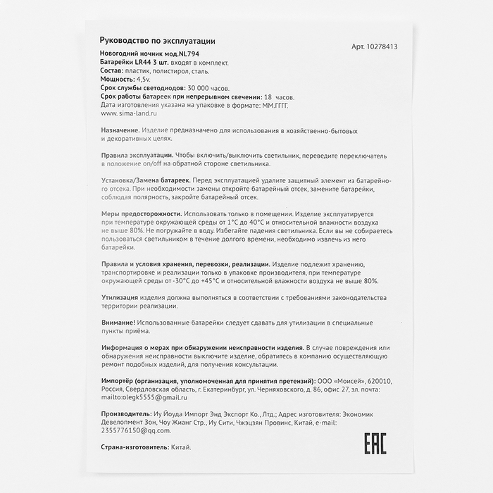 Набор для творчества «Новогодний ночник. Змея», зелёная — Характеристики