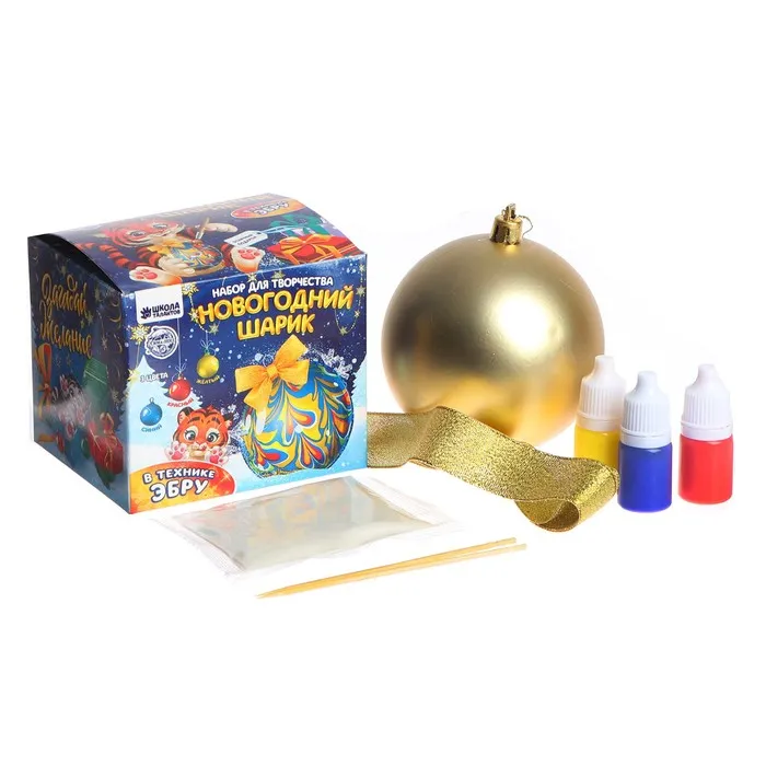 Набор для творчества. Новогодний шар - эбру, золотой шар — Характеристики