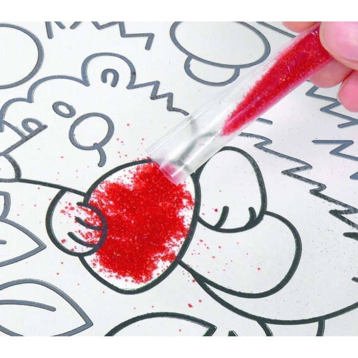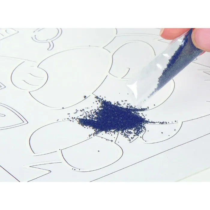 Все материалы набора безопасны для детей. Песок нетоксичен, не вызывает аллергии. Основа с рисунком выполнена из высококачественного картона.