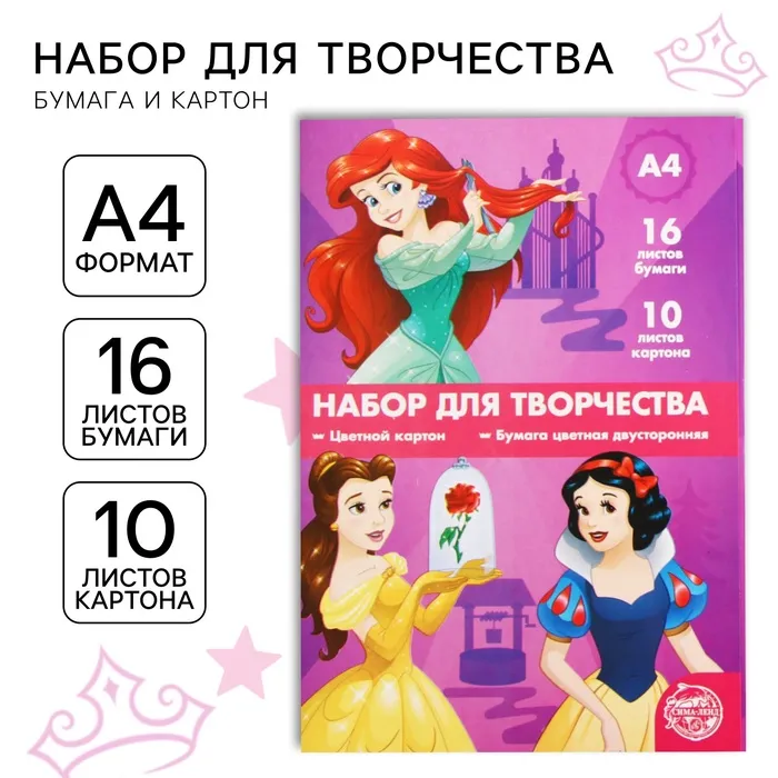 Набор для творчества «Принцессы» А4: 10 л цветного одностороннего картона + 16 л цветной двусторонней бумаги — Характеристики