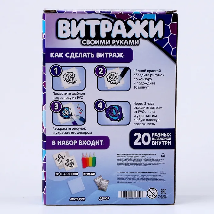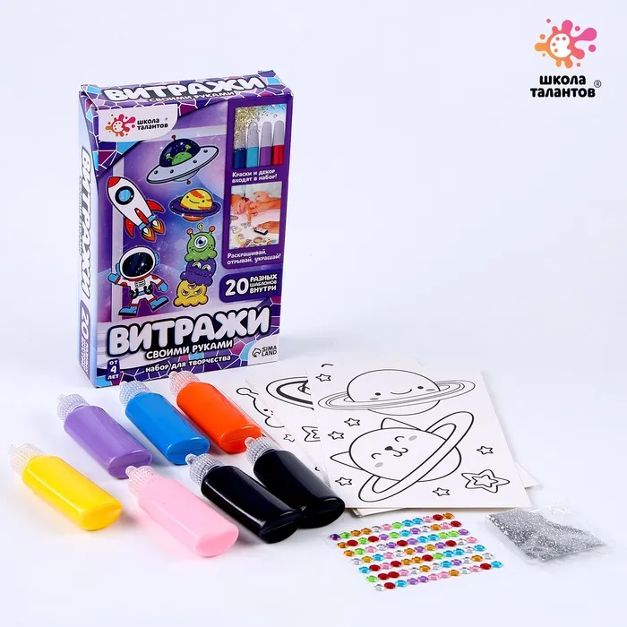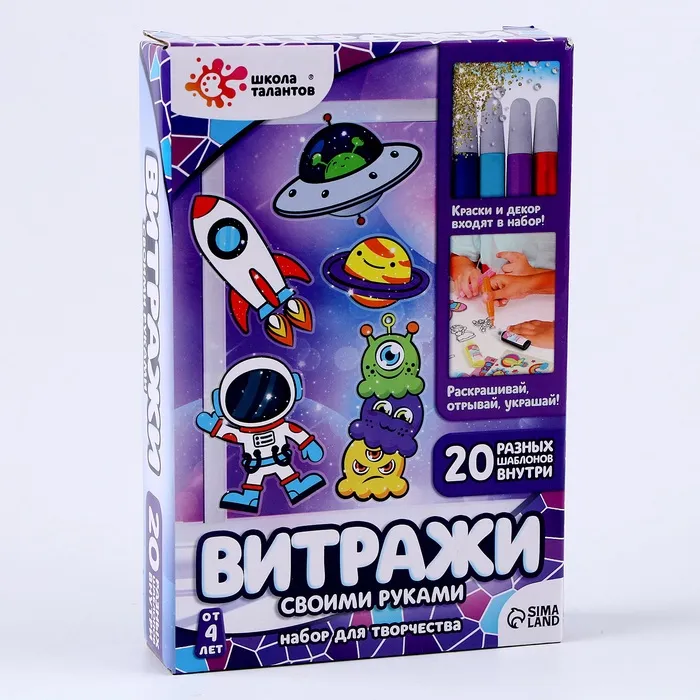 Набор для творчества «Раскрась витражики: Космос», 20 шт. в наборе — Характеристики