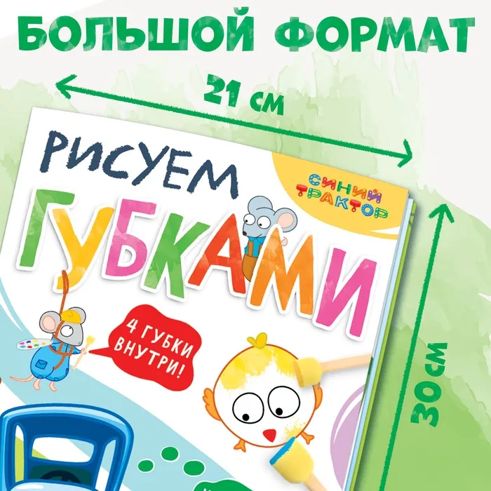 Набор для творчества «Рисуем губками»: 2 книги по 20 стр., А4, 8 губок, Синий трактор — Характеристики