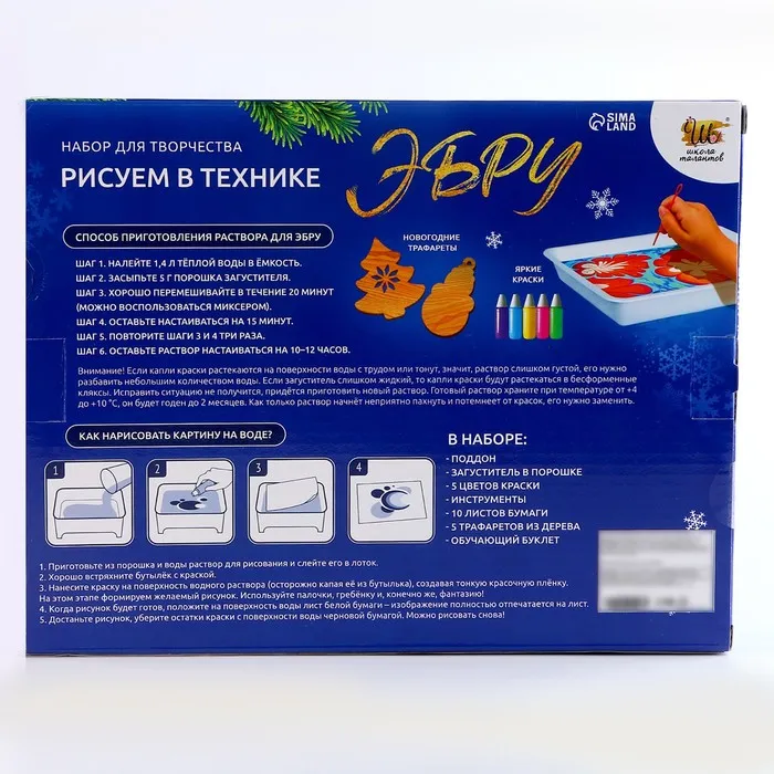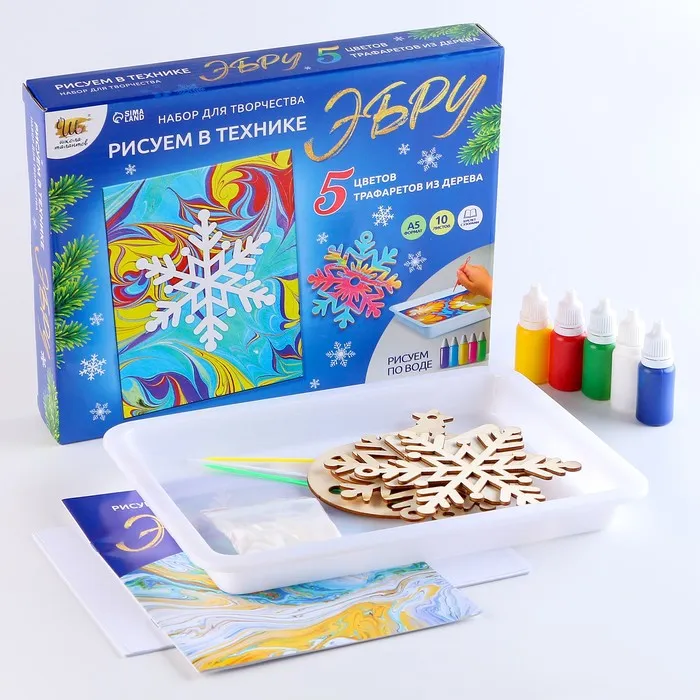 Набор для творчества «Рисуем в технике Эбру», А5, 5 ёлочных украшений — Характеристики