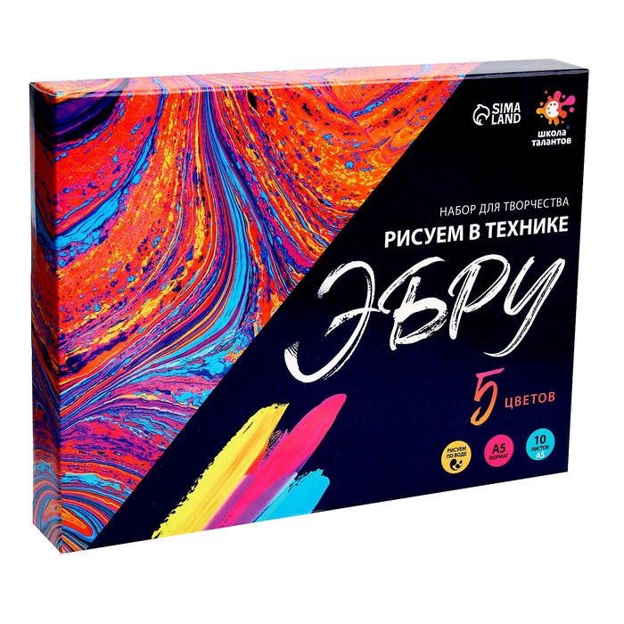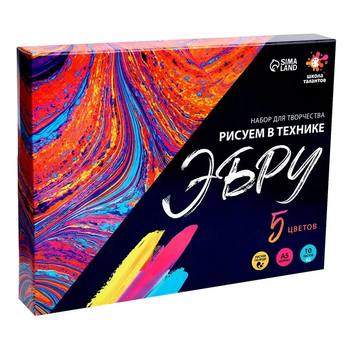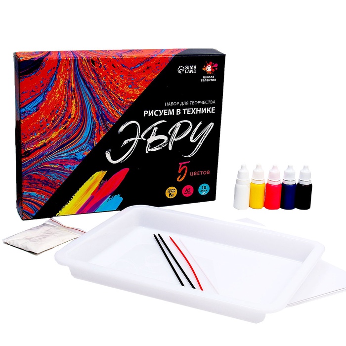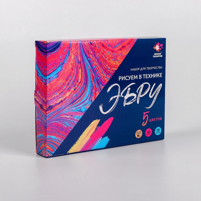 Эбру — техника рисования на поверхности воды с последующим переносом изображения на другую основу. Набор для творчества поможет вам познакомиться с этой удивительной техникой живописи, а также развить воображение, мелкую моторику и проявить творческие способности. Получившуюся картину можно перенести не только на бумагу, но и на ткань.