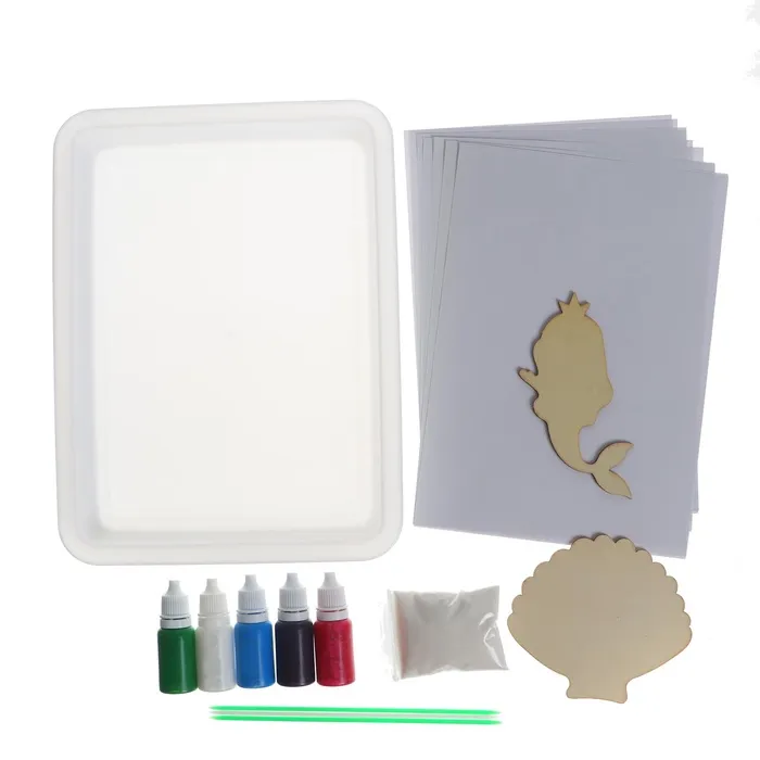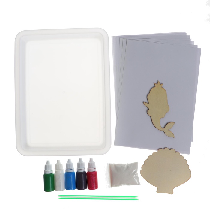 Набор для творчества «Рисуем в технике Эбру. Русалочка», 10 листов, А5, 2 деревянных трафарета — Характеристики