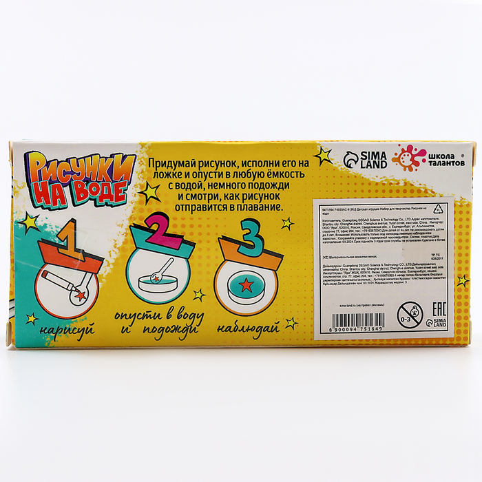 С набором для творчества малыш сможет сделать волшебные рисунки. Готовые картинки магическим образом отправятся в плавание по воде!