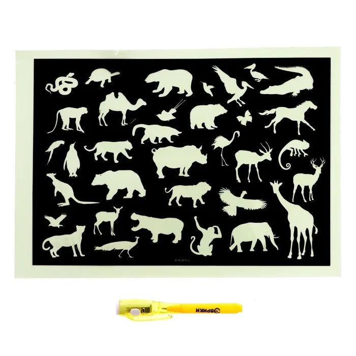 Для рисования используйте трафарет или изображайте всё, что подскажет ваша фантазия! Постепенно следы от фонарика будут затухать. Вы можете подождать, пока они исчезнут полностью (около 30 минут) или творить поверх старых рисунков — каждый новый слой будет ярче предыдущего.