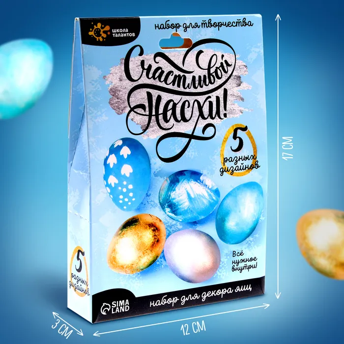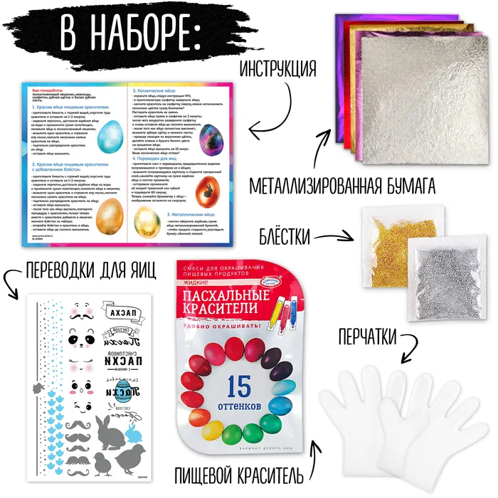 Набор для творчества «Счастливой Пасхи» поможет вам украсить праздничный стол. С набором вы задекорируете варёные яйца в 5 различных техниках.