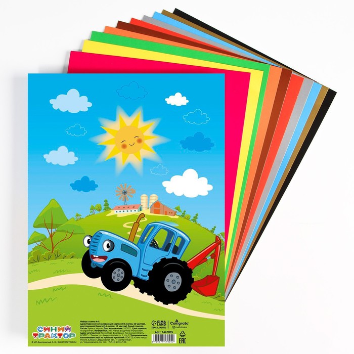Набор для творчества «Синий трактор» А4, 10 листов цветного одностороннего картона, 16 листов цветной двусторонней бумаги — Характеристики