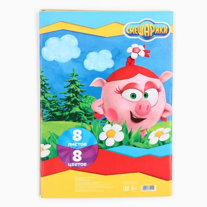 Набор для творчества «Смешарики» А4: 8 л цветного одностороннего картона + 8 л цветной двусторонней бумаги — Характеристики