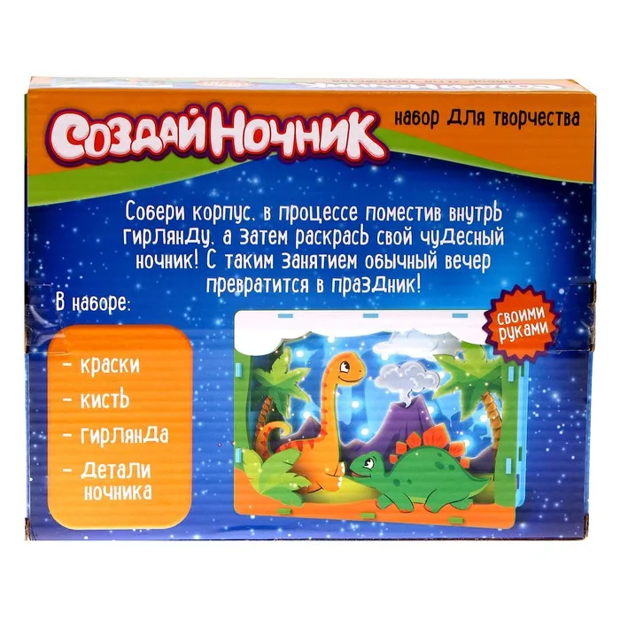 С этим набором для творчества ребёнок своими руками сделает уникальный ночник с картинкой внутри. Сборка поможет развить творческие способности ребёнка. А ещё подарит радость и чудесное настроение всей семье. Создайте волшебную атмосферу праздника!
