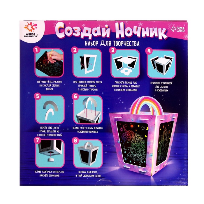 Набор для творчества «Создай ночник с гравюрой. Единорог», 3Д конструктор, голографическая гравюра, 3+ — Характеристики