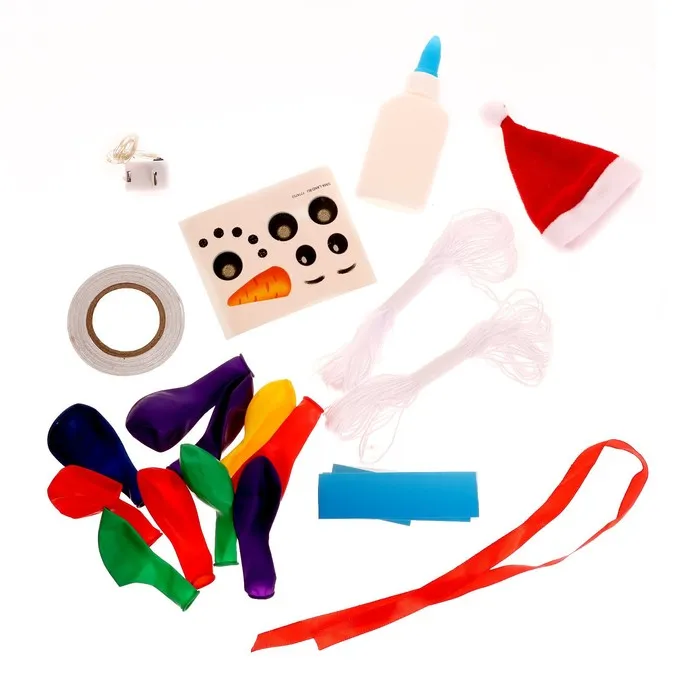 - Подготовьте инструменты для работы. Дополнительно вам понадобится игла, ножницы, ёмкость для клея, карандаш, салфетки для удаления излишков клея.Надуйте два шарика: один побольше — для туловища, другой поменьше — для головы.