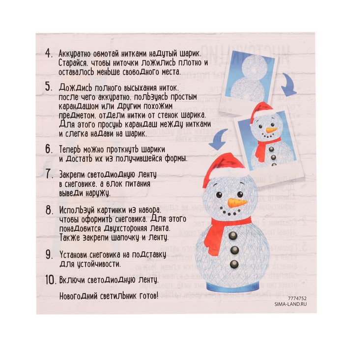 Набор для творчества «Создай ночник», Снеговик — Характеристики