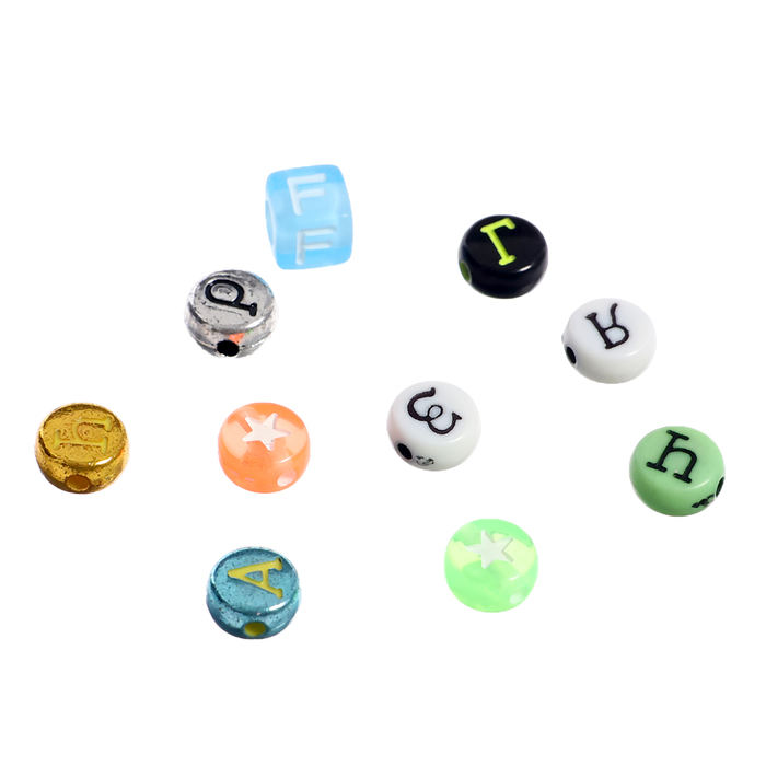 - В комплекте есть бусины с английскими буквами, из которых можно составить надпись на браслете.