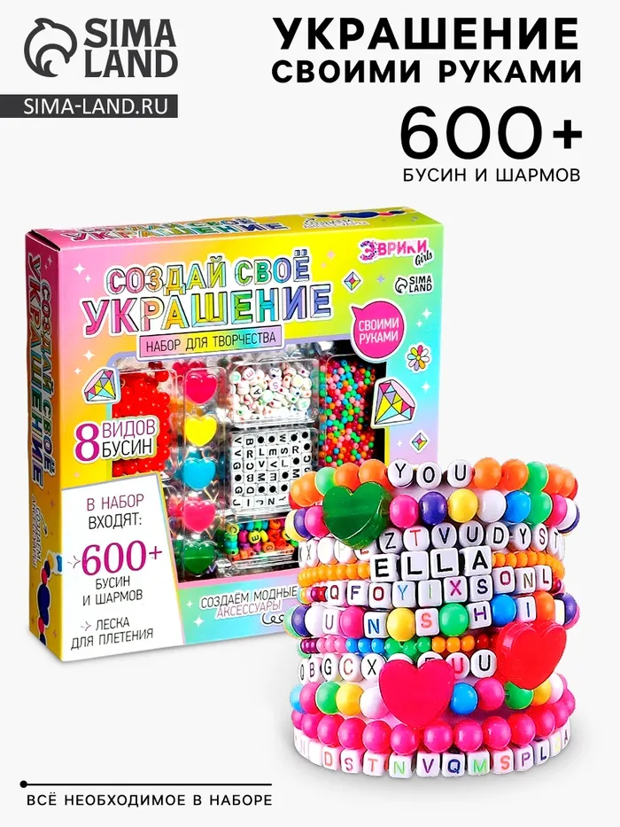 Набор для творчества «Создай своё украшение», 600 бусин и шармов — Характеристики