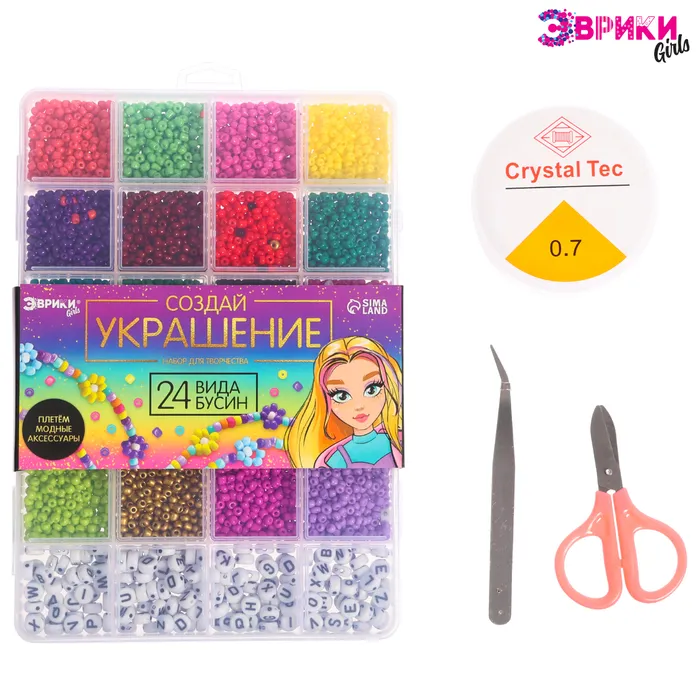 Набор для творчества «Создай своё украшение», бисер, буквы, 24 вида — Характеристики