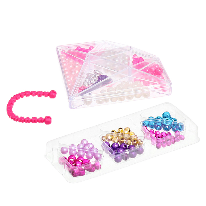 - Проявив фантазию, малышка сможет сочетать элементы набора с другими видами плетения, например соединить бисер с резиночками и получить уникальную бижутерию.