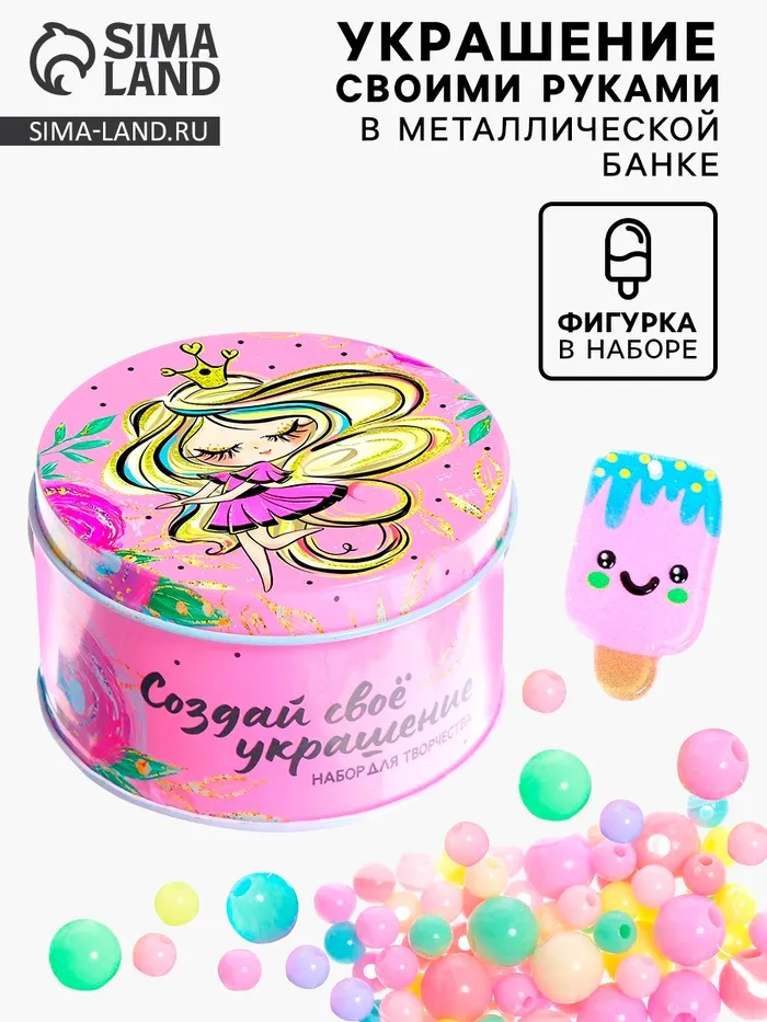Набор для творчества «Создай своё украшение: Принцесса», в металлической банке — Характеристики