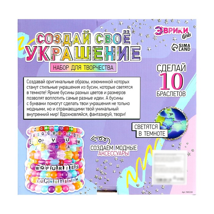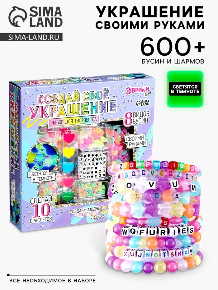 Набор для творчества «Создай своё украшение», светящиеся бусины, 10 браслетов, 8 видов бусин — Характеристики
