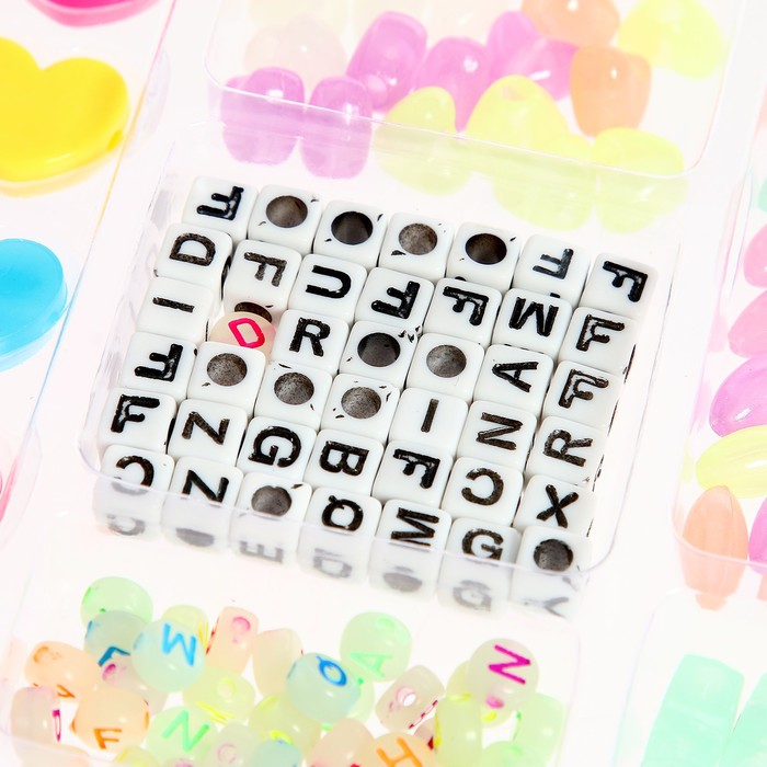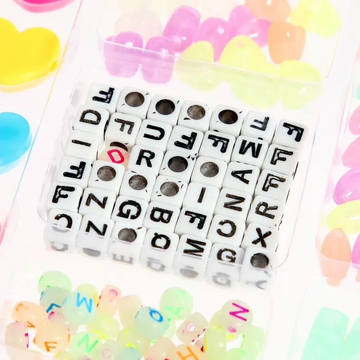 - В комплекте есть бусины с буквами, из которых можно составить надпись на браслете.