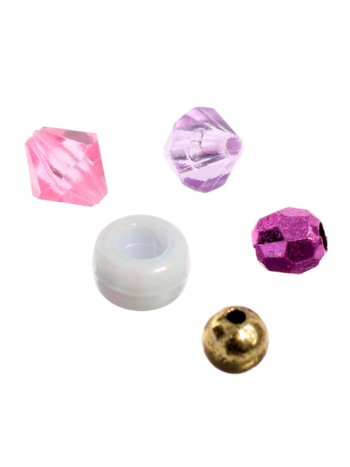 - Проявив фантазию, малышка сможет сочетать элементы набора с другими видами плетения, например соединить бисер с резиночками и получить уникальную бижутерию.