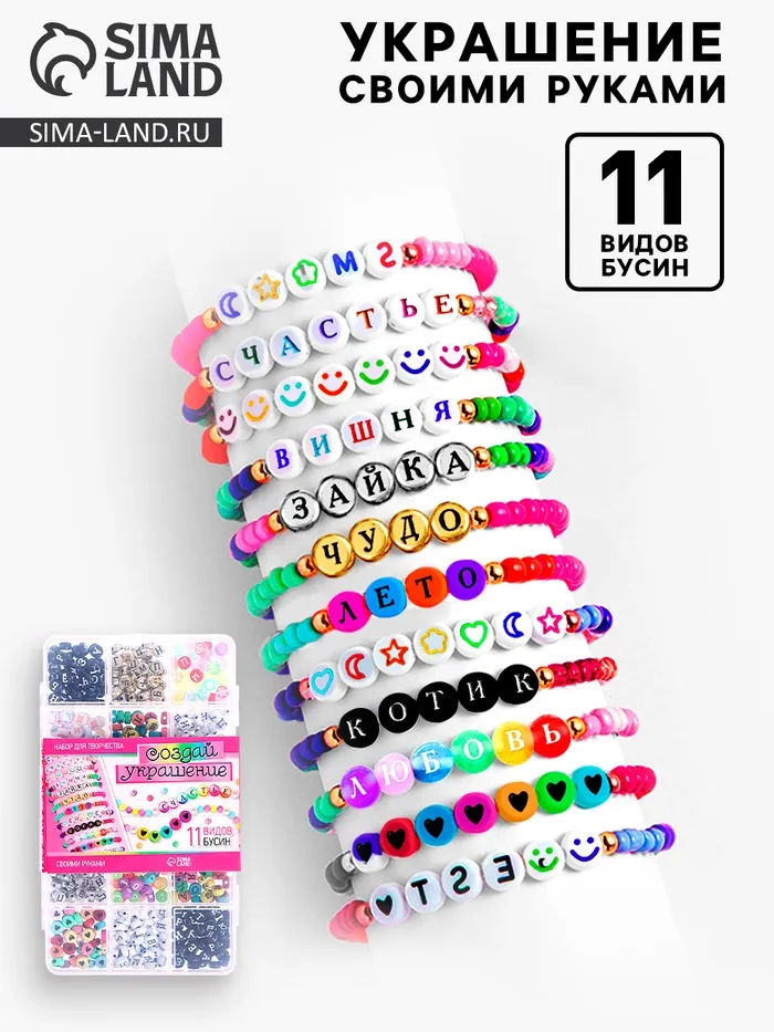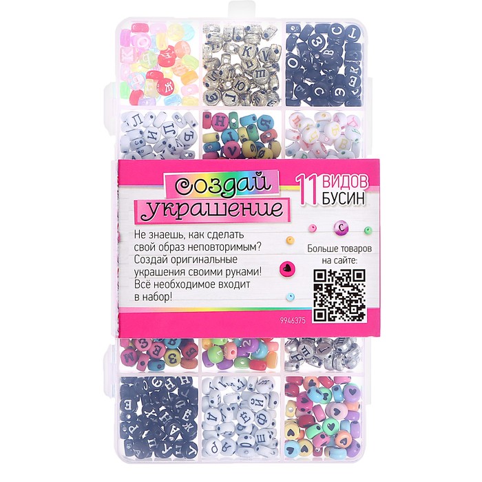 Набор для творчества «Создай украшение», буквы русские, 11 видов бусин — Характеристики
