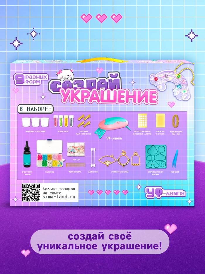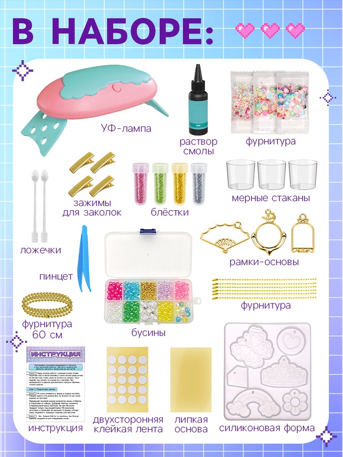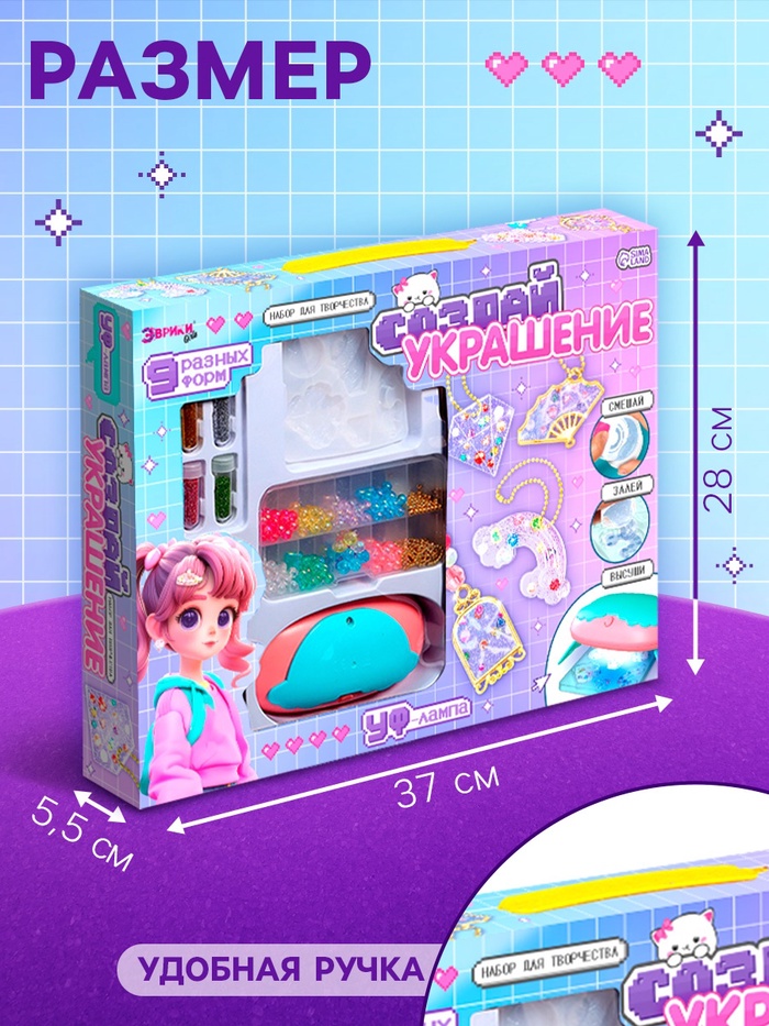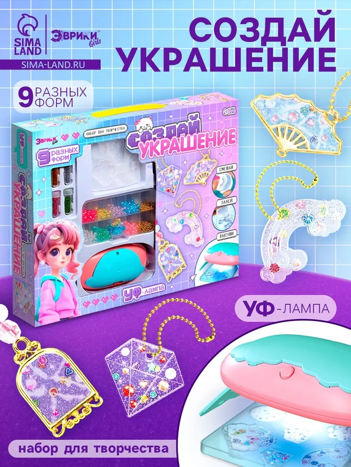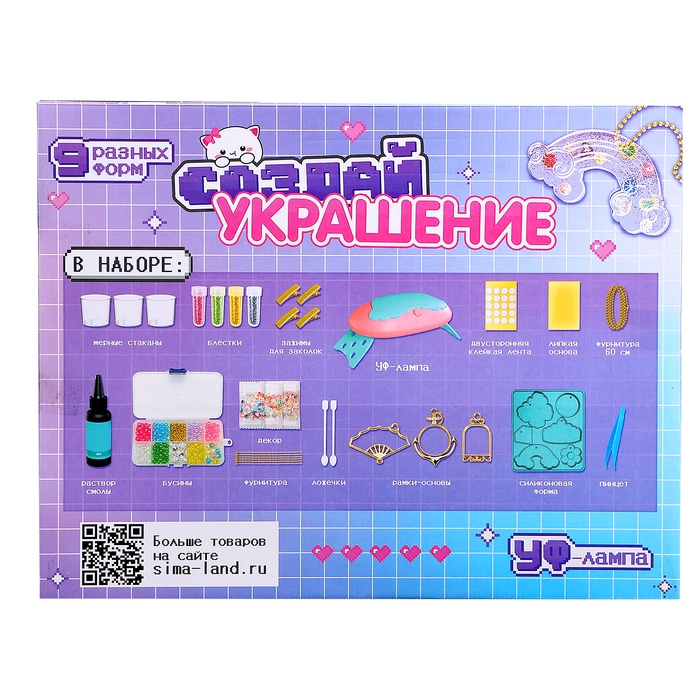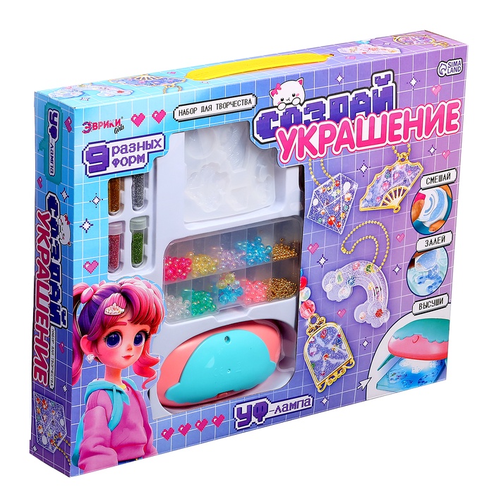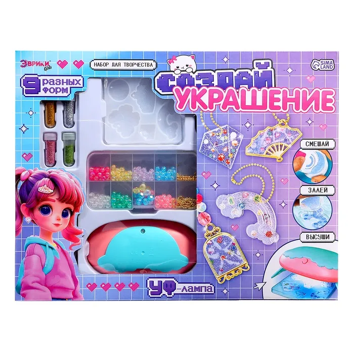 Набор для творчества «Создай украшение», УФ-лампа, смола, 9 форм, фурнитура — Характеристики