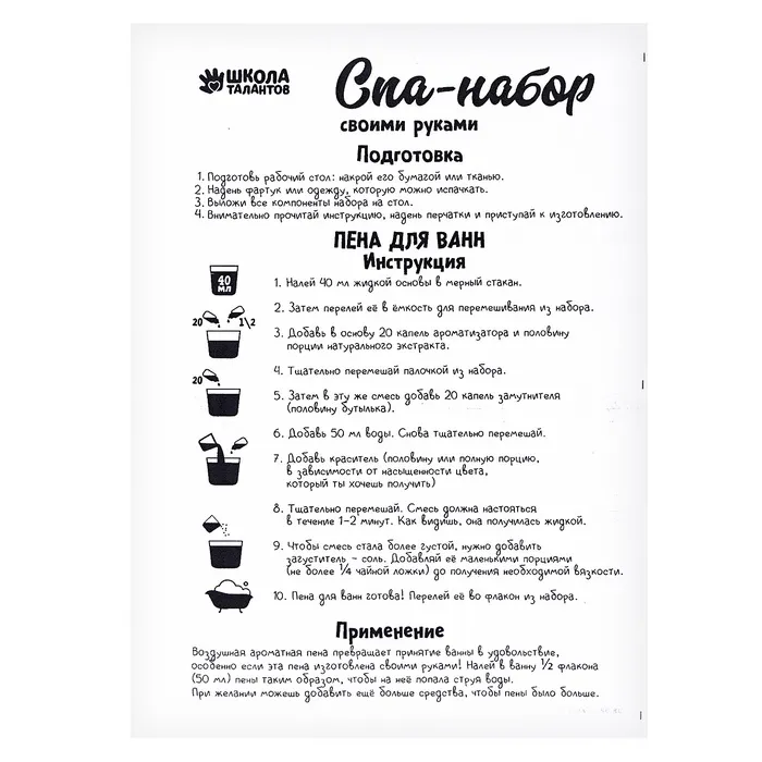 В этом наборе есть всё для того, чтобы самостоятельно создать волшебные средства для водных процедур и устроить спа-салон прямо дома!