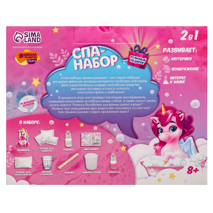 В этом наборе есть всё для того, чтобы самостоятельно создать волшебные средства для водных процедур и устроить спа-салон прямо дома!