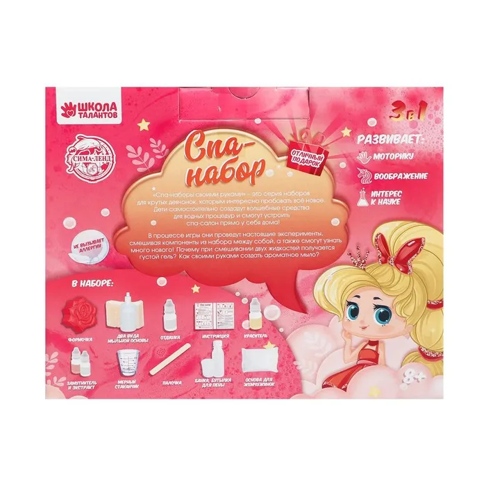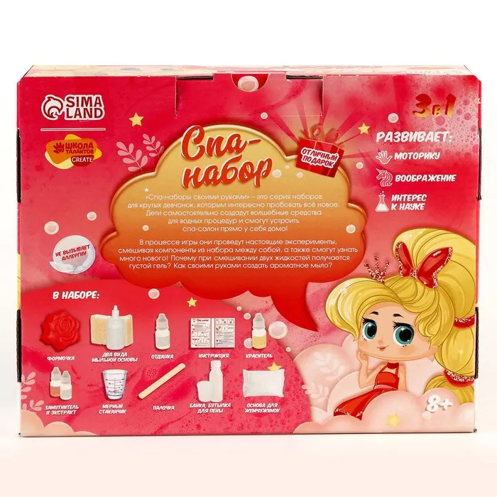 В этом наборе есть всё для того, чтобы самостоятельно создать волшебные средства для водных процедур и устроить спа-салон прямо дома!
