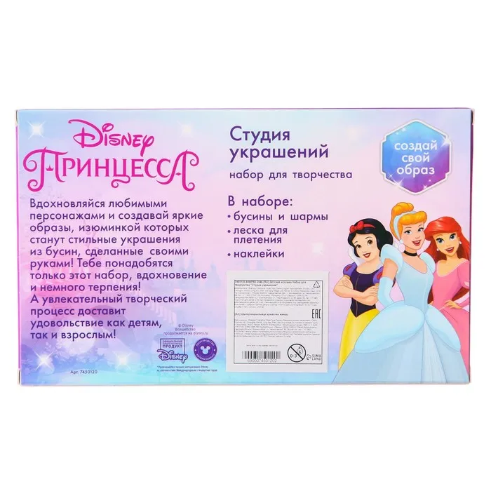 С таким набором девочка сможет вдохновиться любимыми принцессами из вселенной Дисней и сделать ожерелье, браслеты или брелок для телефона своими руками.