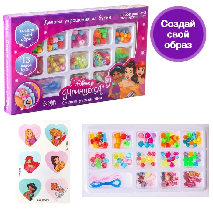 Набор для творчества «Студия украшений» Принцессы Disney, 13 видов бусин — Характеристики