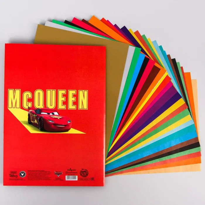 Набор для творчества «Тачки» А4: 10 л цветного одностороннего картона + 16 л цветной двусторонней бумаги — Характеристики