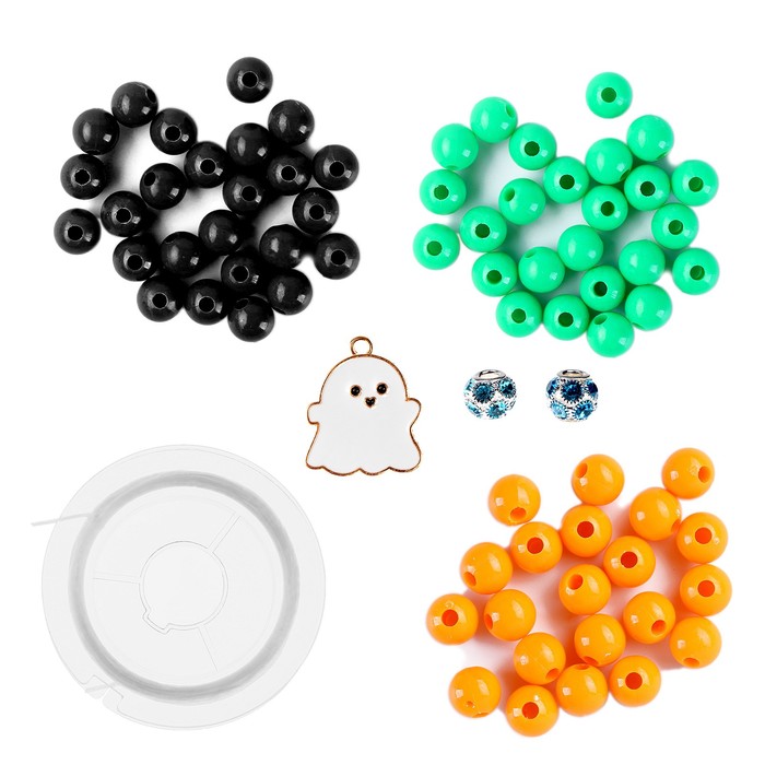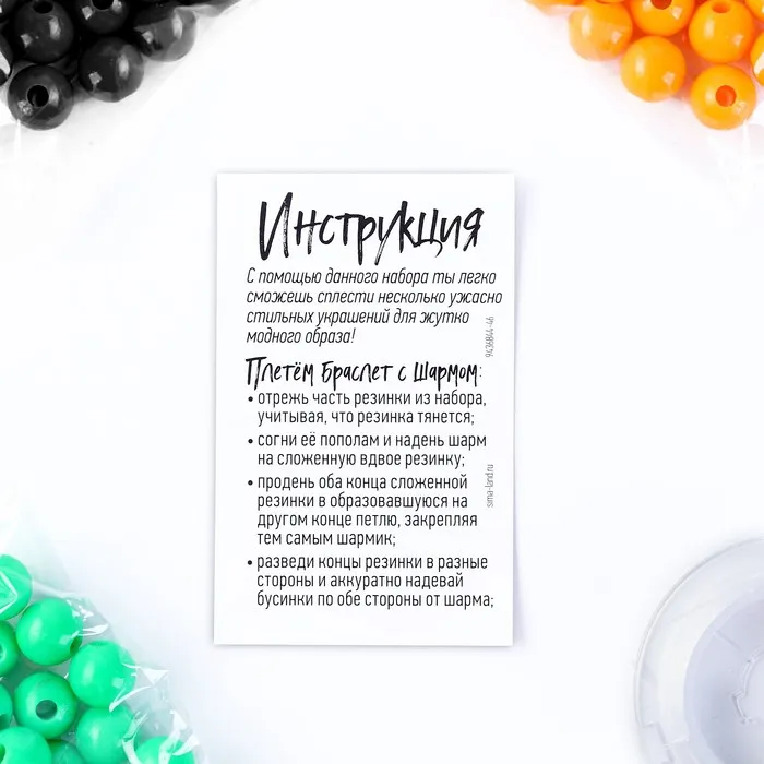 В наборе: бусины, шармик, нить-резинка, инструкция.