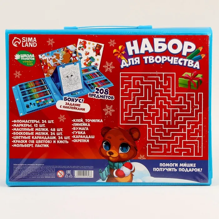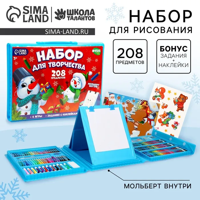Набор для творчества «Веселый снеговик», с мольбертом, 208 предметов — Характеристики