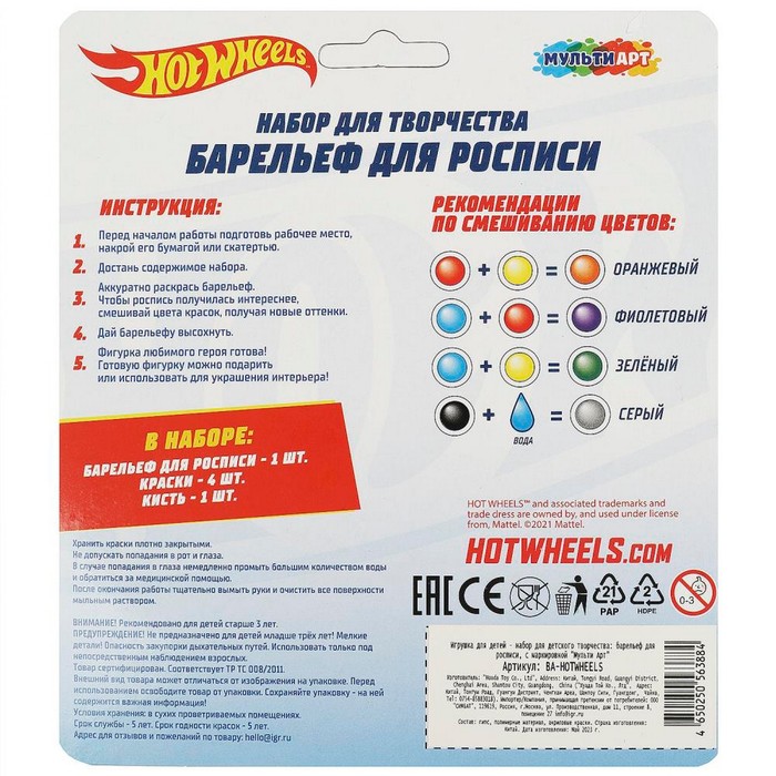 Набор для творочества «Барельеф для росписи. Хот Вилс», 1 шт. — Характеристики
