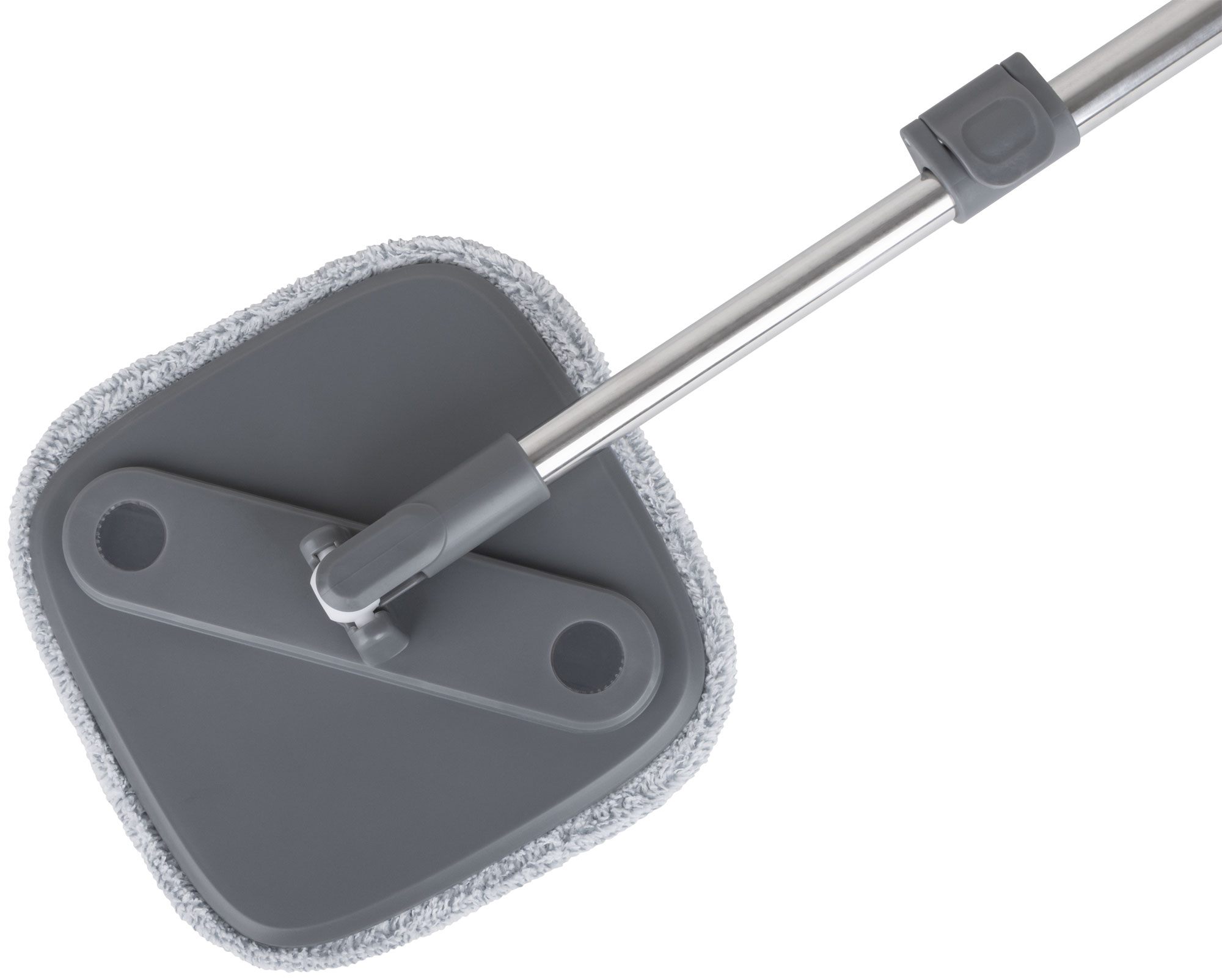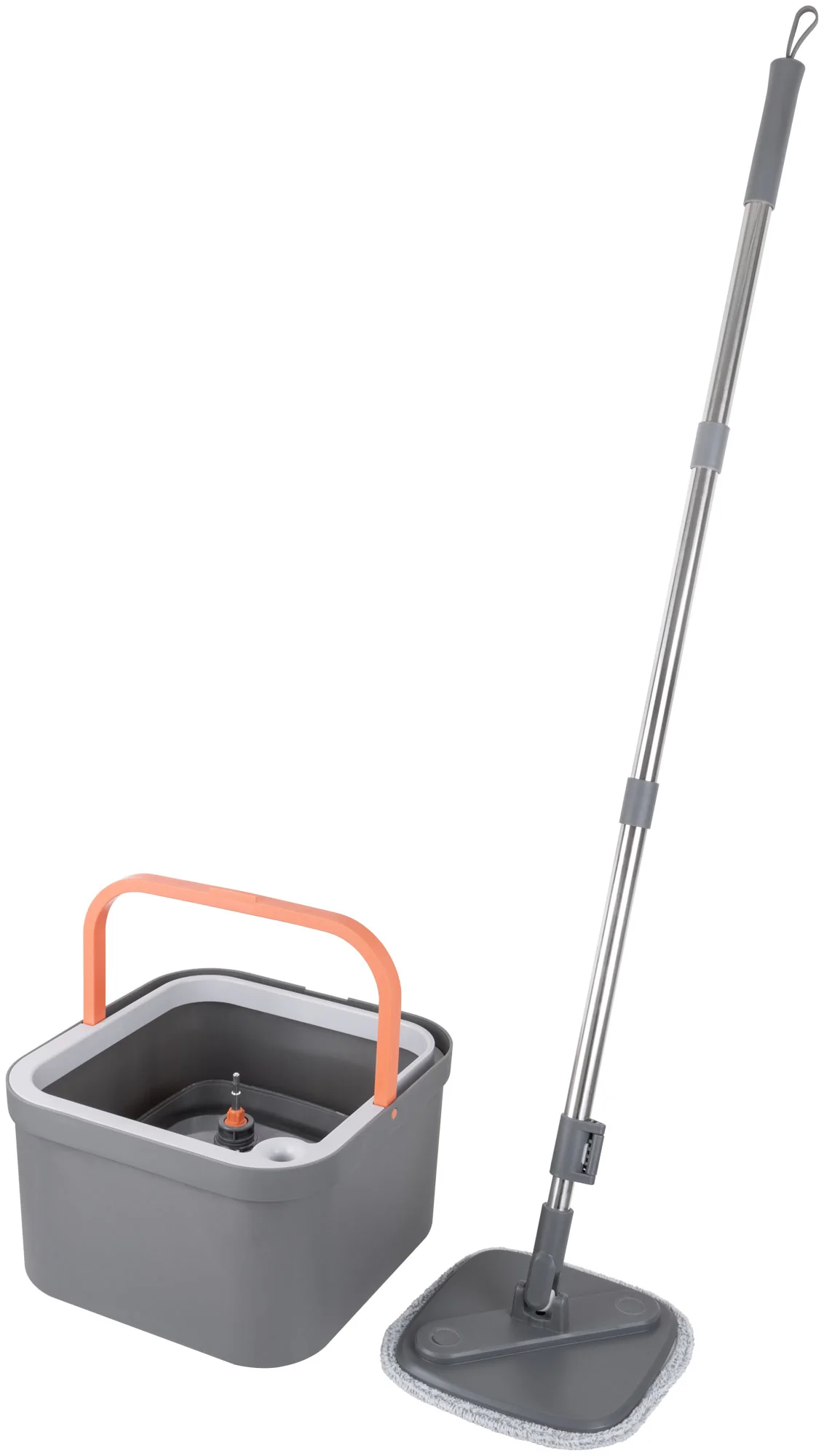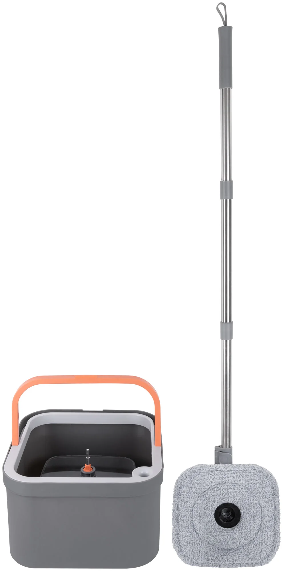 Комплект включает в себя швабру с квадратной насадкой и ведро объемом 2,6 литра, изготовленные из нержавеющей стали, микрофибры и полипропилена. Ведро оснащено уникальной системой полоскания и отжима, которая позволяет использовать только чистую воду для промывки насадки, а грязная вода отправляется в отдельный контейнер.