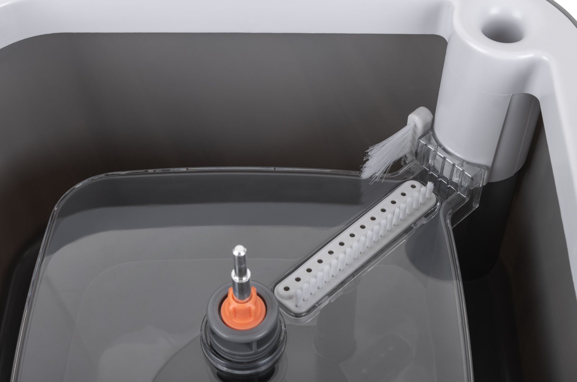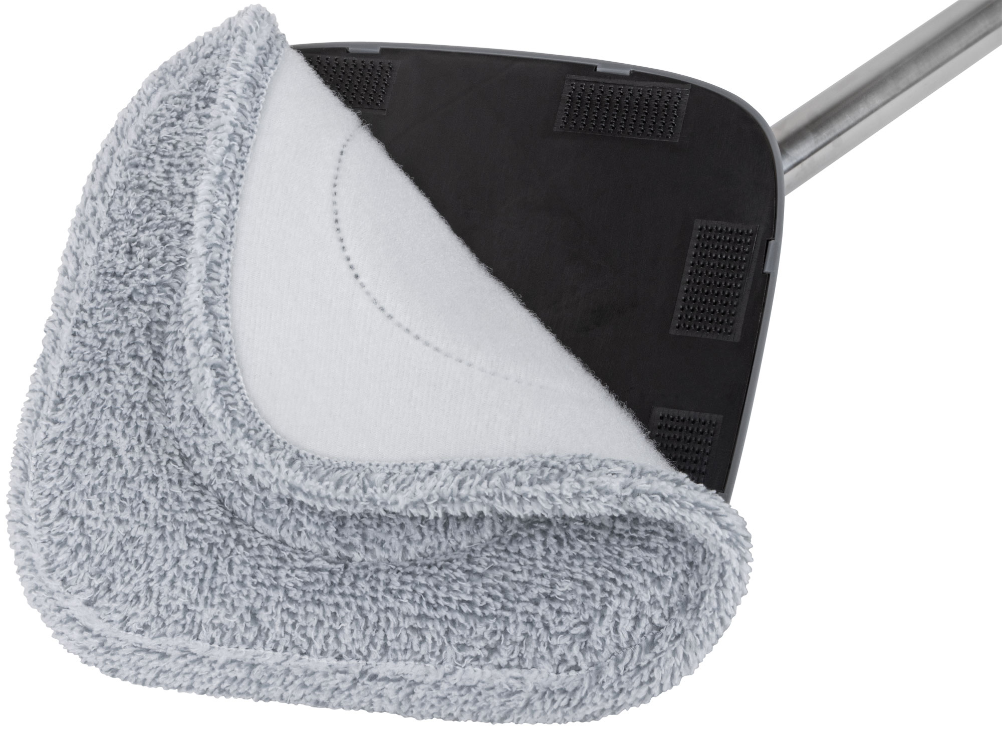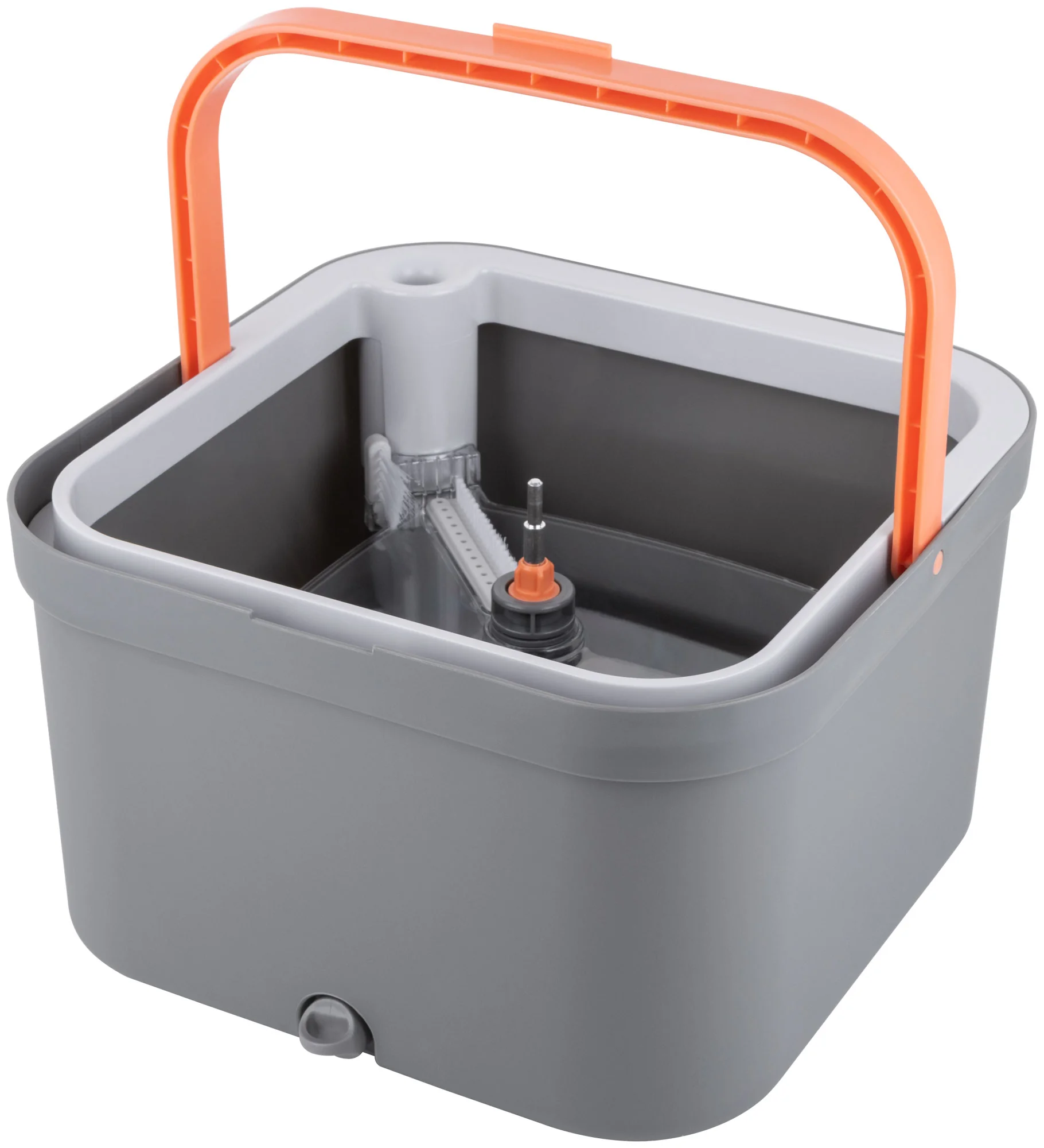 Комплект включает в себя швабру с квадратной насадкой и ведро объемом 2,6 литра, изготовленные из нержавеющей стали, микрофибры и полипропилена. Ведро оснащено уникальной системой полоскания и отжима, которая позволяет использовать только чистую воду для промывки насадки, а грязная вода отправляется в отдельный контейнер.
