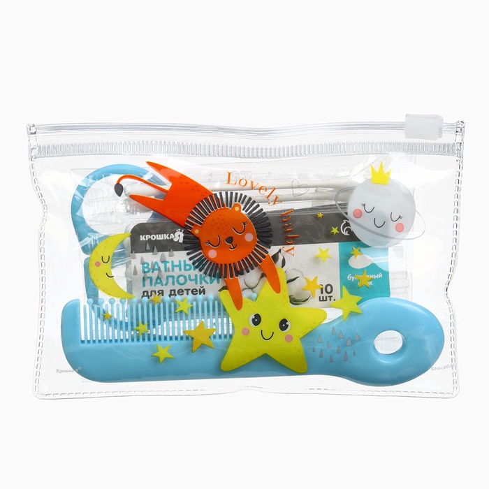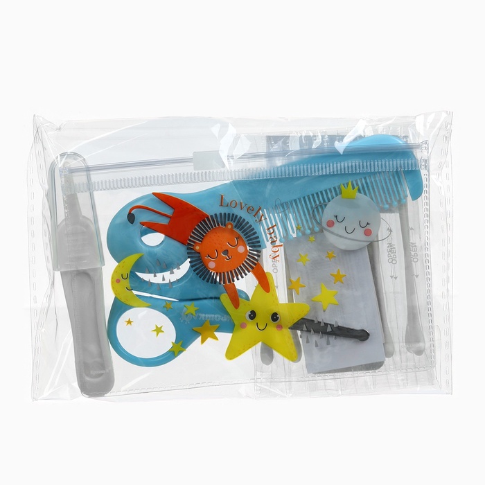 Набор по уходу за ребёнком, 5 предметов: щётка, расчёска, безопасные ножницы, пилочка и щипчики для ногтей, голубой