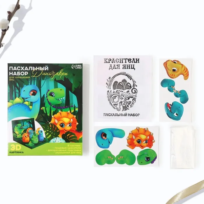 Набор для украшения яиц в 3D коробке «Динозавры» на пасху, 12,5 х 15,5 см — Характеристики