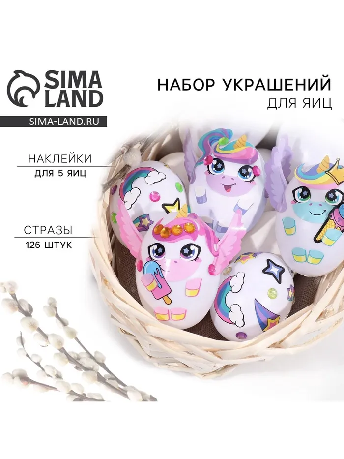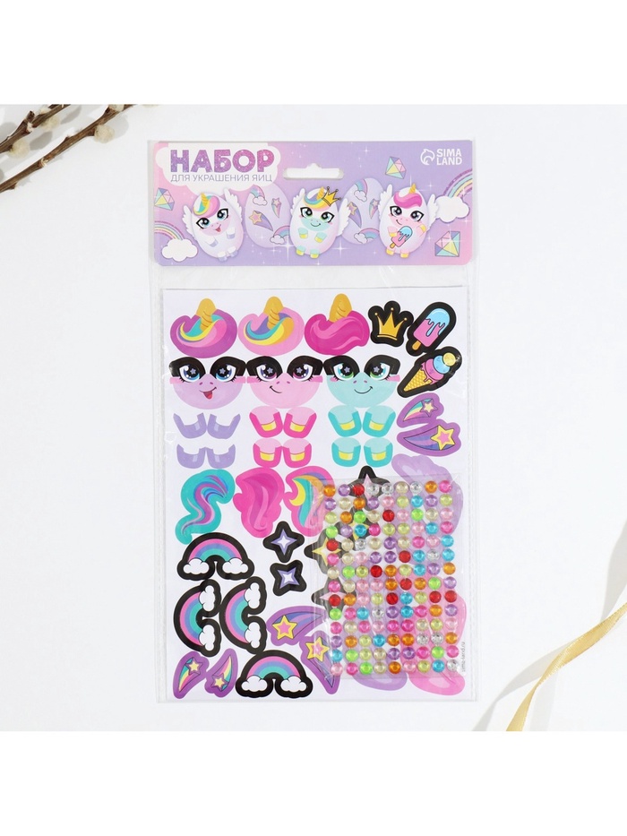 С помощью данного набора вы сможете украсить яйца к светлому празднику Пасхи. Также данный набор - это отличный подарок для ваших близких, который не имеет возрастных ограничений и применим для каждого, ведь все любят украшать яйца на пасху. Особенно данный набор будет интересен детям благодаря своему яркому наполнению в виде наклеек и страз.