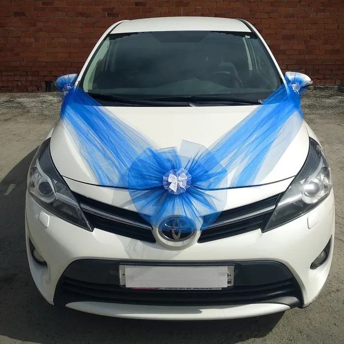 Традиция украшать автомобиль сохранилась ещё с давних времён, когда молодожёнов катали тройки лошадей. Сейчас по-прежнему используют эти атрибуты, но украшают уже машины. Кольца крепят с помощью лент на крышу, дверные ручки украшают аккуратными бантами, а на капоте растягивают нарядную ленту с цветами или рюшами.